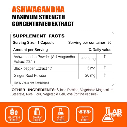 Maximum Strength Formula: Provides equivalent to 6000 mg ashwagandha root powder from 300 mg of 20:1 high potency ashwagandha extract. Ashwagandha is referred to as an adaptogen herb, as it helps the body cope and adapt to more than a few stress that occur in daily life.