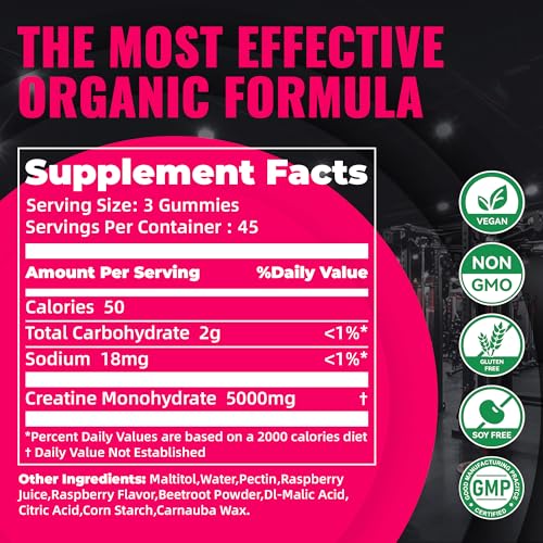 [Premium Formula,Maximum Efficacy]: Our Creatine monohydrate gummies contains 5g=3 gummies pure creatine monohydrate per serving combined for Maximum Benefits.