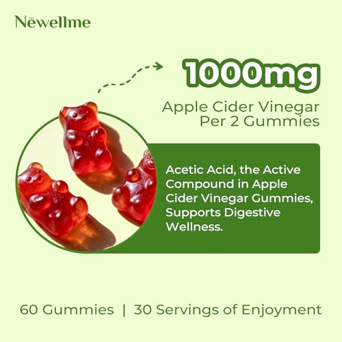 NEWELLME Sugar-Free Apple Cider Vinegar (ACV) Gummies with The Mother & B12, Vegan Organic Vitamin Gummies for Digestion, Energy & Metabolism,Gluten-Free, Multivitamin Support,120 Counts