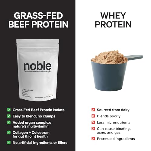 Noble Grass Fed Beef Protein Powder | Beef Protein w/Collagen, Colostrum, Organ Blend | Carnivore, Keto Friendly | Whey, Gluten Free | Muscle, Gut Health, Skin, Joint Support | 30 Servings, Vanilla