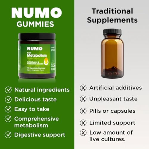 Numo Apple Cider Vinegar Gummies from The Mother, ACV Gummies with Probiotics, Folic Acid, MCT Oil, Vitamin B12, Pomegrante, Supports Digestive Health, Immune System, Gut Health – 60 Count