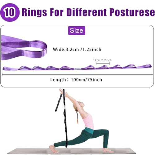 ✅Light and Easy to Use: The Yoga Straps for Stretching has 10 loops of rope with a comfy texture. About 75 inches long and 1.25 inches wide enough to recommend most beginners to use it, yoga stretches are so easy to work with although you’ve never done them. It is vitally suitable for people in the family, including the elderly, to do stretching exercises.