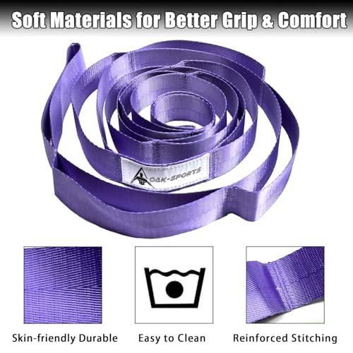 Oak-Sports Stretching Strap Yoga Strap for Physical Therapy with 10 Loops, Yoga Straps for Stretching, Upgraded Non-Elastic Stretch Band for Pilates, Dance and Gymnastics with Workout Guide