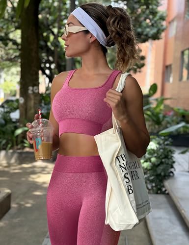 OLCHEE Womens Workout Sets 2 Piece Seamless Square Neck Sports Bra Padded Butt Lifting Leggings High Waist Yoga Gym Outfits