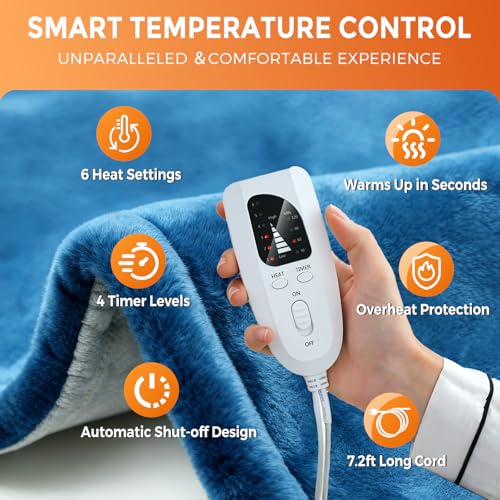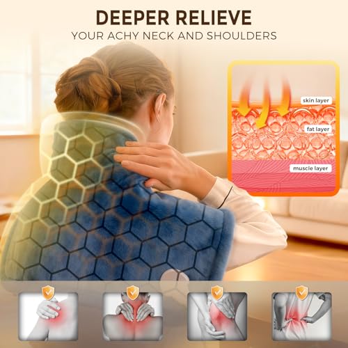 Oripira Heating Pads for Neck and Shoulders and Back, Weighted Electric Heating Pad for Deeper Pain Relief, 6 Heat Settings, 4 Auto-Off, 23″ x 17″, Birthday Christmas Gifts for Men Women, Blue