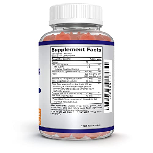 O!VITA Apple Cider Vinegar Gummies with The Mother, Gluten Free, Vegan, Made with Pomagranate, Beet Root, and Vitamin B12 for Energy – 60 Non-GMO Apple Flavored Gummies, up to 2-Month Supply