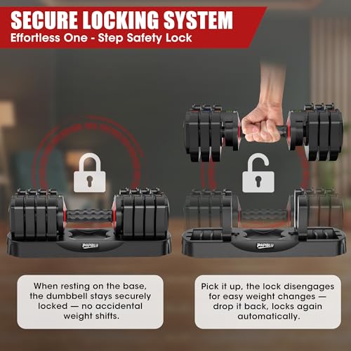 【1-Second Quick Weight Adjustment】No complicated disassembly or alignment—just twist the handle with one hand (while the dumbbell is on the base) to switch weights instantly. The smooth adjustment lets you transition between exercises (like from bicep curls to shoulder presses) without downtime, keeping your workout efficient and focused.