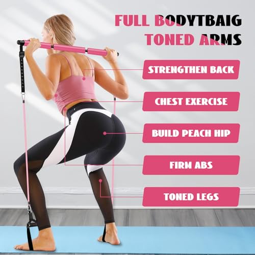 Pilates Bar Kit with Resistance Bands for Working Out, Pilates Equipment with Ab Roller for All Fitness Levels, Portable Home Gym Full Body Workout Equipment for Women&Men