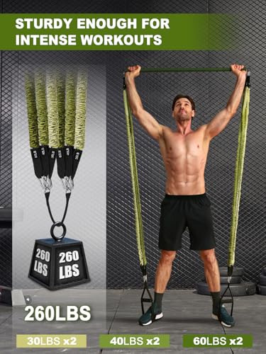 🏋️♂️【【260LBS Heavy Resistance Bands】FitWader pilates bar kit features 6 high-elasticity exercise bands—2x30LBS, 2x40LBS, and 2x60LBS—providing up to 260lbs of resistance. Includes a variety of resistance bands to accommodate different fitness levels, taking into consideration adjustable resistance as you progress (Recommended height range: 5ft – 5.9ft tall)