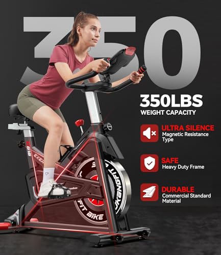 【350 lbs Weight Capacity & Rock-Solid Stability for All Users】 Built to last, our stationary bike features a robust steel frame and a wide, curved base that ensures unwavering stability. The 35lbs flywheel and dual brake knobs offer smooth, controlled resistance, even as 5 adjustable non-slip foot pads do away with any shaking. Perfect for users up to 350 lbs, this indoor bike delivers a protected, safe, and quiet cardio workout every time.