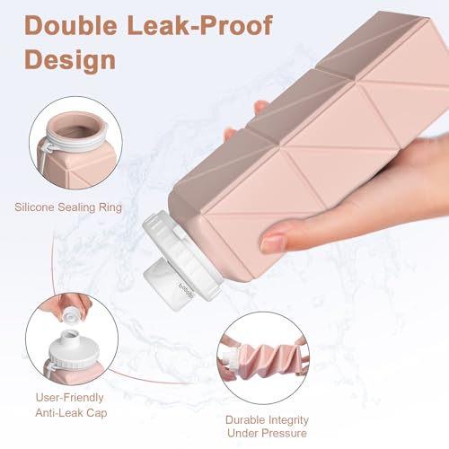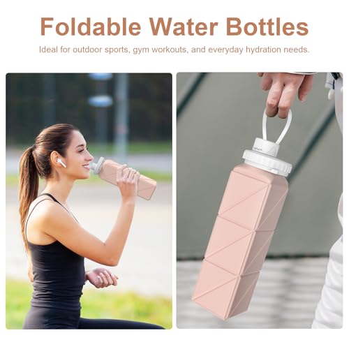 FOLDABLE DESIGN & SPACE SAVER:The foldable water bottle can hold 580ml of liquid and weighs only 210g. It can be folded from 9.9 inches to 6.3 inches high. The foldable and lightweight design saves you 50% of the space, suitable for carrying and easy to store. Very suitable for kids, girls, boys, women, men.