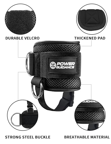 POWER GUIDANCE Ankle Strap for Cable Machine Professional Kickback Ankle Strap for Glute Workouts, Leg Extensions – Adjustable Strap with D-Rings