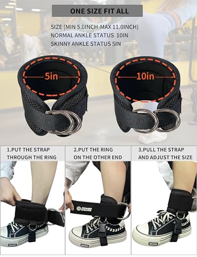 DURABILITY AND SAFETY: With its cross 3 premium stitching and 7MM reinforced steel double D-rings which can easy to adjust. The 4 inch support strap is secured with heavy duty material, making this strap extremely easy to adjust.The adjustable design allows for a perfect fit, catering to different ankle sizes, and the secure attachment ensures stability throughout the workout.