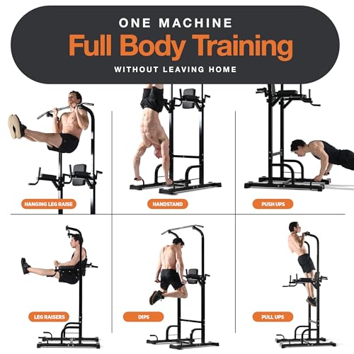 Versatile Exercise Options: Supports quite a lot of exercises, including pull-ups, chin-ups, dips, vertical knee raises, push-ups, and leg presses, targeting arms, chest, back, shoulders, and core. Multifunctional design caters to full-body strength training for all fitness levels, from beginners to advanced users.