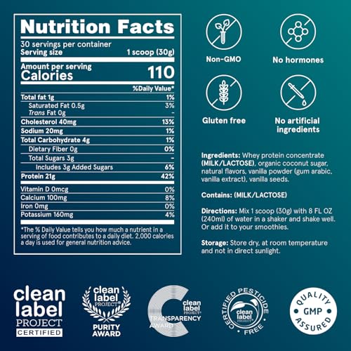 Why We Made PW1: Puori’s PW1 Whey Protein powder is designed without artificial sweeteners, additives, or unnecessary ingredients. It provides the essential building blocks for recovery and muscle improve with peace of mind.* Each and every serving delivers 21g of protein, is non-GMO, and free from hormones. Flavor: Vanilla. 1.98 lbs.