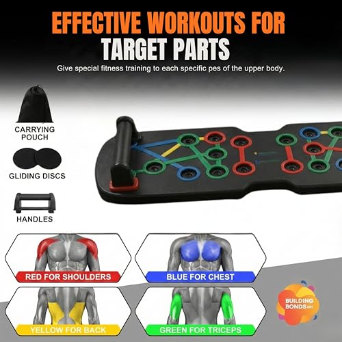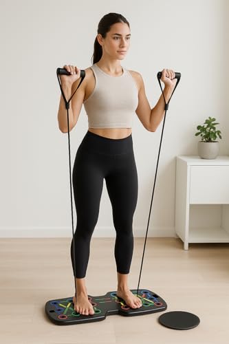 QUIET HOME TRAINING — Apartment-Friendly Setup Low-affect sliding discs and resistance bands work smoothly, making this multi-functional push up board ideal for small spaces, apartments, and full home gyms.