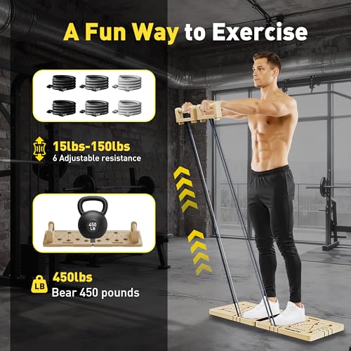 Push Up Board 30 in 1 Foldable with Resistance Bands – Thickened Pine Wood Multi-Push Up Board for Men & Women, Portable Gym/Home Workout Gear for Chest, Shoulders, Arms & Back