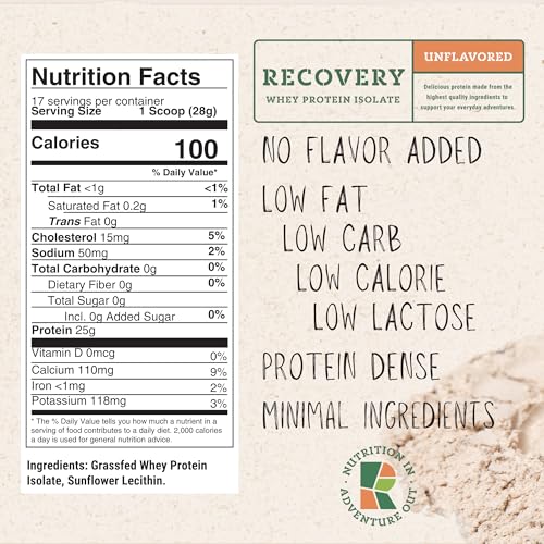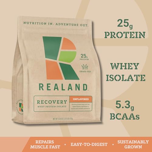 Realand Whey Protein Isolate – Grass-Fed Protein Powder for Recovery – 22g of Protein – 17 Servings (One Size, Unflavored)