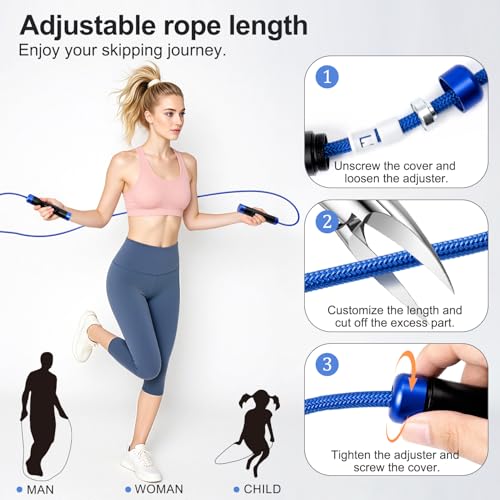Versatile & Adjustable for All Ages:This weighted jump rope weighs about 1LB with an easily adjustable length, catering for men, women, and youth. Ideal for everyone—from beginners to seasoned athletes, this Rapid Speed Skipping Rope is a flexible tool for cardio, endurance, and strength training