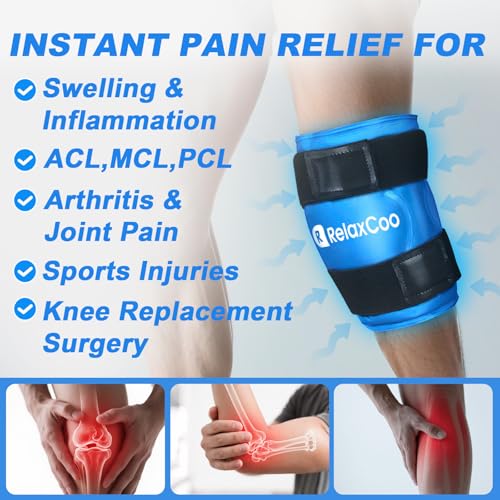 RelaxCoo Ice Pack for Knee Pain Relief, Reusable Gel Ice Wrap for Leg Injuries, Swelling, Knee Replacement Surgery, Cold Compress Therapy for Arthritis, Meniscus Tear and ACL Blue