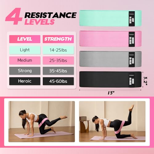 Resistance Bands for Working Out with Guide, 4 Workout Bands for Women & Men, Fabric Exercise Bands for Legs, Hip, Glute, Butt, Booty Bands Set for Yoga, Pilates, Strength and Workout