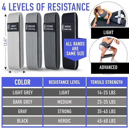 4 RESISTANCE LEVELS. Our work out bands set accommodates a variety of resistances making them perfect booty bands for working out for beginners and advanced athletes. These thigh bands for workout make a superb present for someone wanting to tone their butt, hip or thighs.