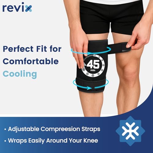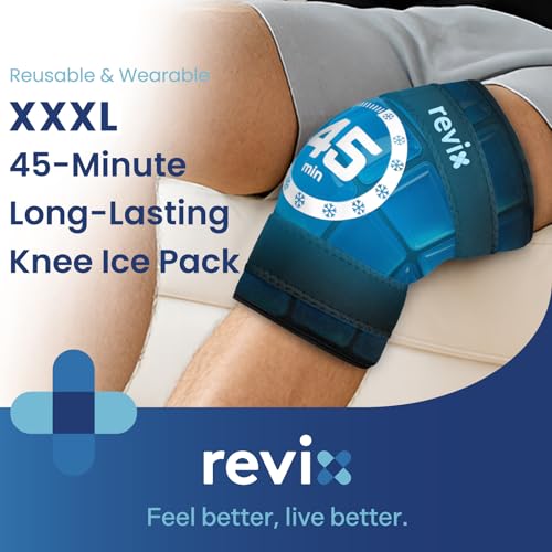 REVIX Extra Large Knee Ice Pack Wrap Around Entire Knee, 45-Minute Long-Lasting Ice Pack for Knees with Ice Grid Gel Design, Cold Compress Therapy for Arms, Thighs, Elbows, Calves & Legs (20″×10.7″)