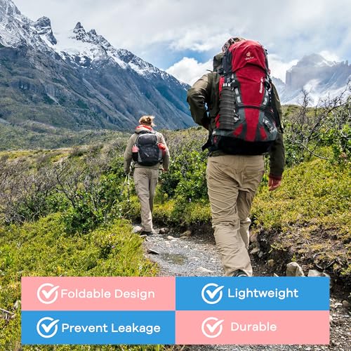 PERFECT TRAVEL COMPANION: This 16oz collapsible water bottle keeps you hydrated anywhere, collapsing to just 4.72 inches and weighing only 140g (lighter than most smartphones!) Featuring an aluminum alloy carabiner, it securely clips onto backpacks, gym bags, or belt loops, while the space-saving design meets TSA requirements for stress – free air travel. Perfect for hiking, camping, gym workouts, and other outdoor activities.