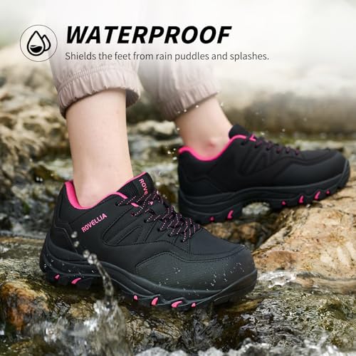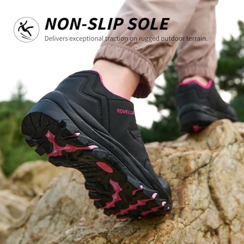 ROVELLIA Waterproof Hiking Shoes Women Fashion Sneakers Tennis Walking Shoes Non-Slip Grip Ankle Support, Durable Comfort for Trekking, Trail Running, and Outdoor Adventures