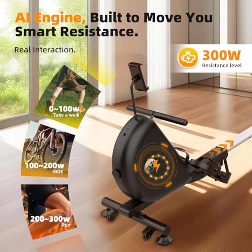 Rowing Machine for Home, Foldable Magnetic Rower with One-Touch Auto Fold, 16 Levels Resistance, Quiet Flywheel, Bluetooth Heart Rate, 300LB Capacity, Self-Powered, Easy Move & Space Saving