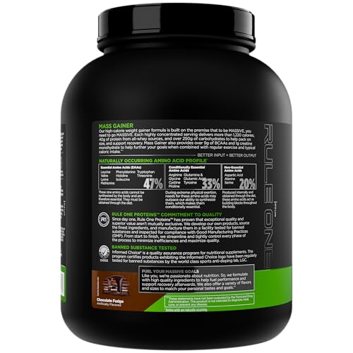 Rule1 Mass Gainer – High-Calorie Weight Gain Formula with 1,220+ Calories, 250g+ Complex Carb Blend, 40g All-Whey Protein Per Serving (8 Servings, Chocolate Fudge)