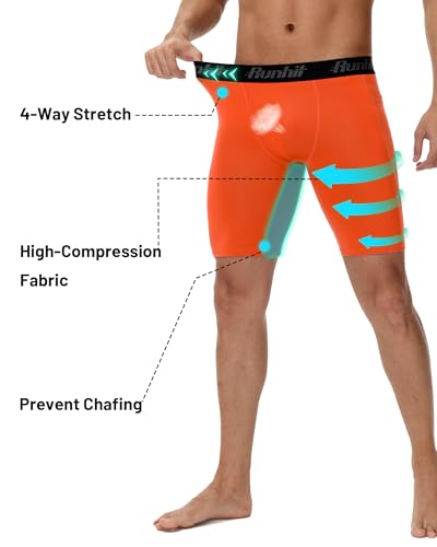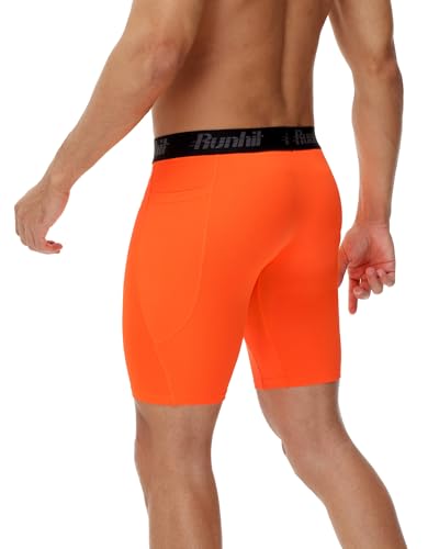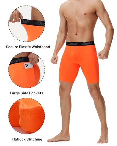 Runhit 2 Pack Mens Compression Shorts with Pockets 9″ Performance Spandex Underwear Sport Athletic Workout Running Base Layer