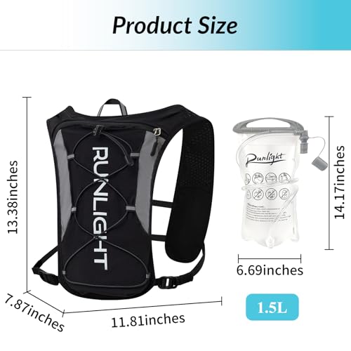 Runlight Running Vest for Women Men, Adjustable Hydration Backpack Breathable Reflective with 1.5L Water Bladder for Hiking, Trail, Running, Marathons, Cycling