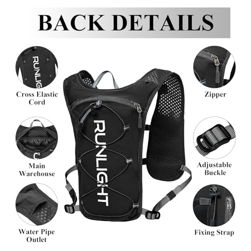 Runlight Running Vest for Women Men Lightweight Hydration Backpack Pack with 1.5L Water Bladder Bag Hydro Daypack for Hiking,Trail,Skiing,Camping,Cycling,Race,Marathon