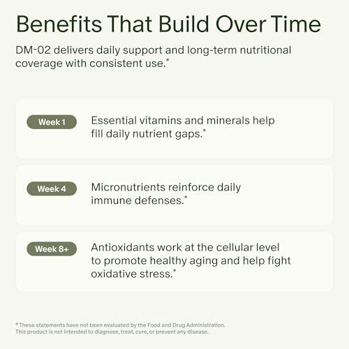 Fill Nutrient Gaps and Support Long-Term Health: Designed for daily use, DM-02 provides comprehensive micronutrient coverage to help support immune function, healthy aging, bone density, and the health of your hair, skin, and nails.