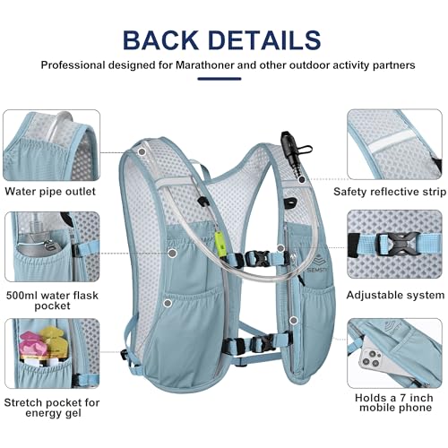SEMSTY Running Hydration Vest 5L,Running Vest Pack with 1.5L Water Bladder,Lightweight Water Backpack for Hiking Running Cycling