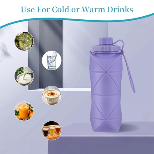 【BPA-Free Hot & Cold Collapsible Bottle】This collapsible sports bottle has a food-grade silicone body and a PP lid. It is 100% BPA-free, safe and healthy for daily use. Featuring a unique dyeing process that is harmless to the human body, it combines good looks with safety. It works for both hot and cold drinks, with a temperature range of -13°F to 392°F.Note: Silicone does not have heat insulation. Please do not hold the bottle body directly when it contains hot water to avoid scalding. We suggest cleaning it with boiled water or a lemon before using it for the first time.