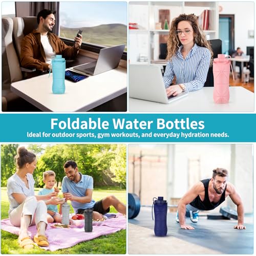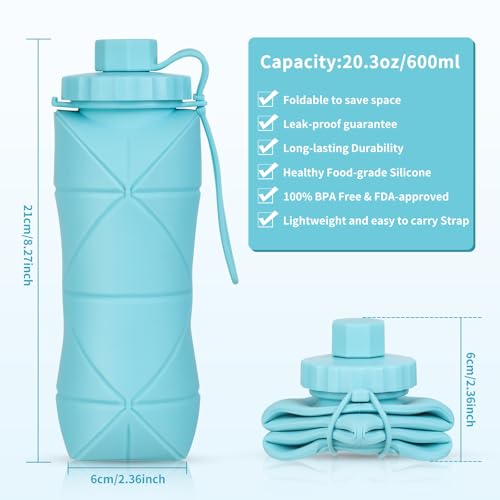 FOLDABLE DESIGN & SPACE SAVER:The foldable water bottle can hold 580ml of liquid and weighs only 210g. It can be folded from 9.9 inches to 6.3 inches high. The foldable and lightweight design saves you 50% of the space, suitable for carrying and easy to store. Very suitable for kids, girls, boys, women, men.