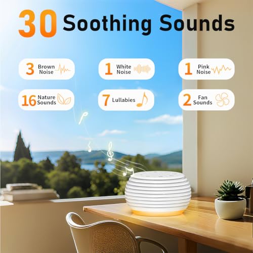 30 High Fidelity Soothing Sounds: Our noise machines for sleeping offer 30 non-looping natural sounds, including white noise, rain, piano, ocean waves, and lullabies. Perfect for babies, kids, adults, and seniors. A thoughtful gift for light sleepers, new parents and meditation lovers.