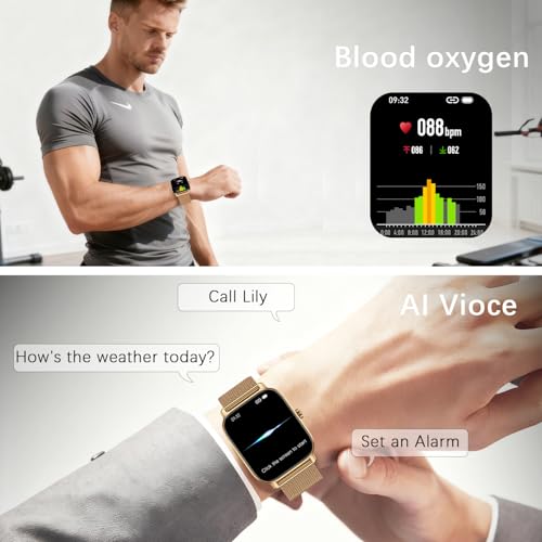 Smart Watch for Women Fitness Tracker: Gold Make Answer Call Waterproof Running Smartwatch Android Phone iPhone Samsung Compatible Digital Mens Watches Pedometer Step Tracker Heart Rate Monitor