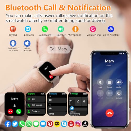 Hands-Free Bluetooth Calling & Real-Time Notifications: Make/receive calls directly from the watch (clear HD sound) and get instant alerts for texts, emails, social media (Facebook/Instagram/WhatsApp), and app reminders—no need to reach for your phone during workouts, commutes, or meetings.