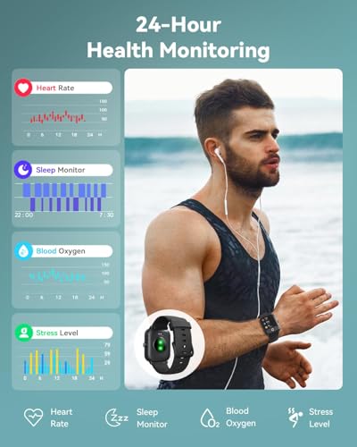 【24/7 Health Monitor and Sleep Tracker】Mens/womens watch equiped with 7 high-performance optical sensors, frequently recording your daily walking steps, distances, calories, and monitoring your heart rate, SpO2, stress level, and sleep status (deep sleep, light sleep, and wakefulness). More features, such as sedentary reminders and water drinking reminders, can help you keep track of your health data and constantly remind you to take care of a healthy lifestyle. Non-medical use.