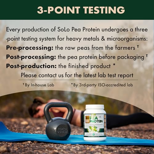 SOLO Organic Pea Protein Isolate, Low in Sodium, Canada Grown Peas, 100% Vegan, Non-GMO, Unflavored Plant Based Protein Powder with BCAA, Keto & Paleo Friendly, Easy to Digest, No Additives (2.7 lbs)