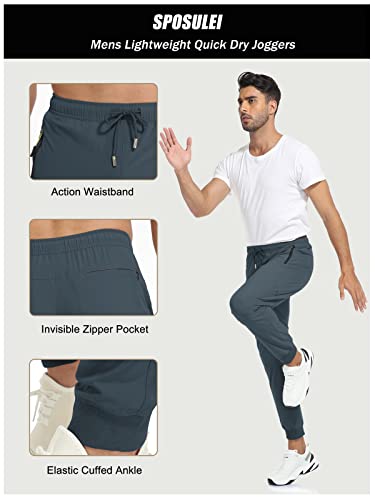 SPOSULEI Mens Joggers Lightweight Athletic Hiking Pants Quick Dry Running Track Gym Sweatpants with Zipper Pockets