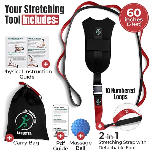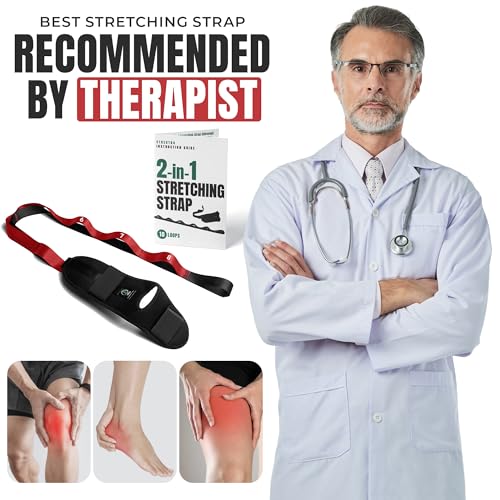 [Versatile 2-in-1 Design] Improve your flexibility and recovery with this stretching strap featuring 10 loops and an attachable foot stretcher. Perfect for yoga, physical therapy, and targeting hamstrings, calves, and hips.