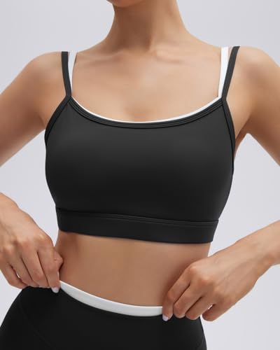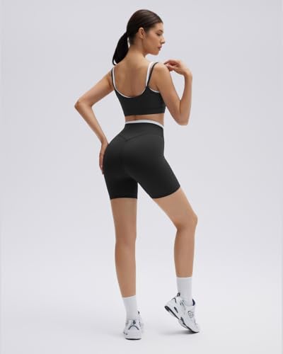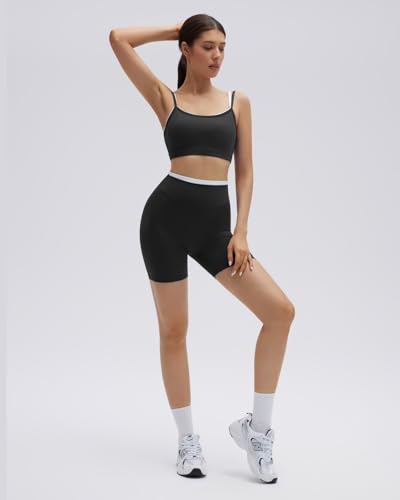 SUUKSESS Women 2 Pieces Workout Sets Padded Spaghetti Straps Camis High Waist Biker Shorts