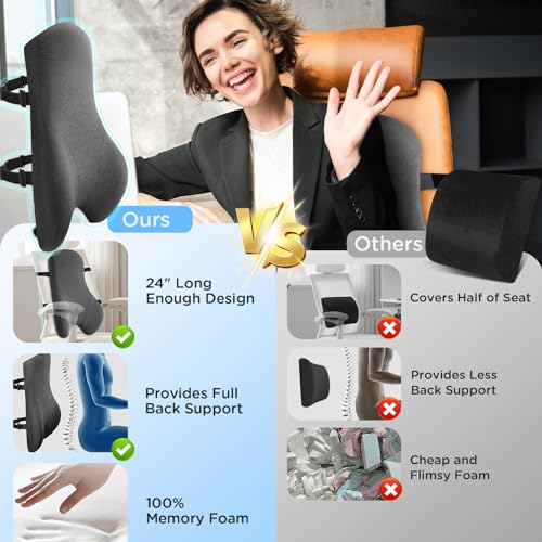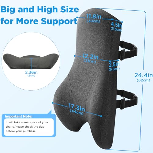 Teemour High Back Support Pillow for Office Chair, Fully Support Back Cushion – Memory Foam Lumbar Support Pillow for Offfice Chair, Desk, Gaming Chair, Promotes Posture Pain Relief Adjustable Straps