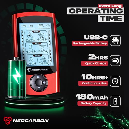 NERVE MUSCLE PAIN RELIEF: You’ll be able to use TENS machine all the way through the day, just connect the cables and put the pads for an effective muscle stimulation. Internal 180 mAh rechargeable battery: a single 2-hour charge gives you 1 month of day-to-day use.