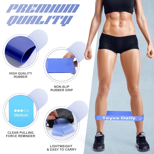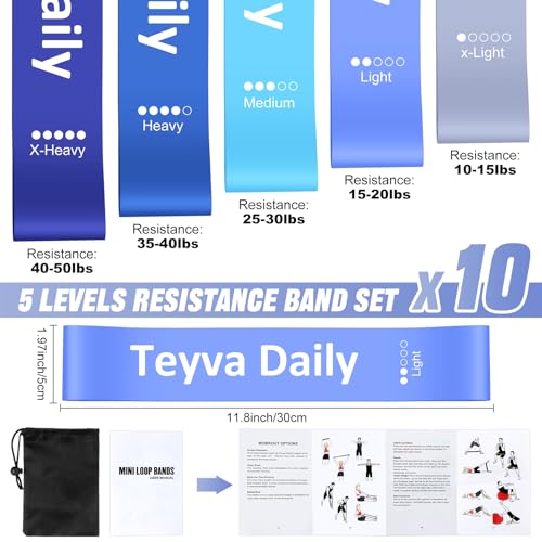 Teyva Daily 50 Pcs Resistance Loop Exercise Bands for Booty Workout Stretch Exercise Bands 5 Level Each Set with Storage Bag Non Slip for Legs Squat Resistance Loop Women Men Fitness