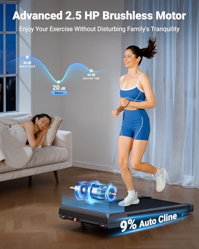 【Quiet 2.5HP Brushless Motor 】 The walking pad with incline uses a 2.5HP brushless motor for smooth and quiet operation (